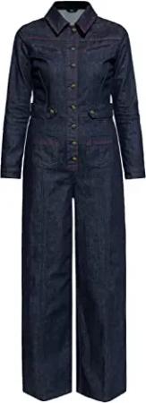 Damen Langarm Jeans Overall Denim Overall Kontrastnaht Jeans Einteiler Ausgestelltes Bein