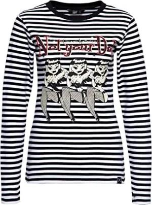 Damen Langarm Shirt Schwarz Rot Gestreift Pin-Up Frontprint Vintage Print Comic-Style 50´S Not Your Doll