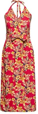 Damen Pencil Kleid Bleistiftkleid Neckholder Hawaii Tropischer All-Over-Print Hibiskus Sommer Party 50S Hawaii Red