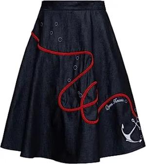 Damen Swing Rock Rock'n'roll Midi Taillenrock Tailliert Anchor