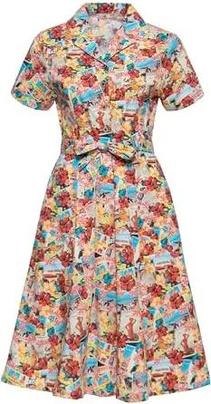 Damen Swingkleid · Sommerkleid · Bunt · A-Linien · 50s · Rockabilly · Rockabella · Pin-up · Vintage · Retro · Allover · Print · Artwork · Hawaii · Beaches