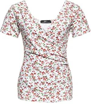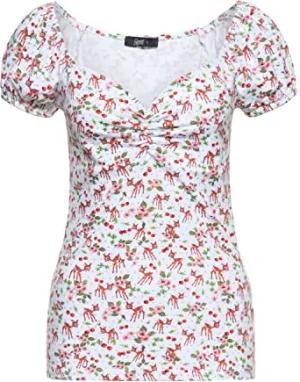 Damen Vintage Shirt Top Slim Fit All-Over-Print Kurzarm Retro Vintage Cherryblossom Deer Kische