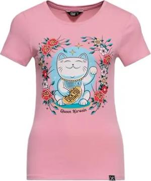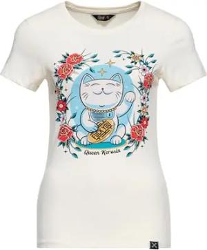 Damen T-Shirt, Kurzarmshirt, Print-Shirt, Artwork, Maneki, Neko, Glückskatze, Tattoo, Roses, Retro · Vintage · Rundhals, Slim Fit, Lucky Cat