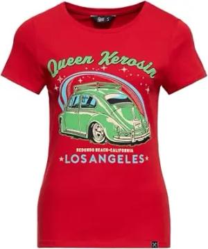Damen T-Shirt Rockabilly Rockabella 50S Slim Fit Front-Print Retro Vintage Hot Rod Rock'n'roll Comic Art 1950 Rebel Rumble Queen