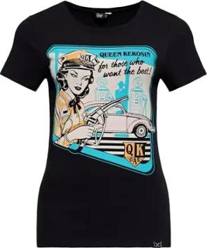 Damen T-Shirt · Print Shirt · Kurzarm · Rundhals · Slim Fit · Vintage · 50s · Retro · Rockabella · Oldtimer · Comic Art · Elastisch · Top · Schwarz · Qk Gas