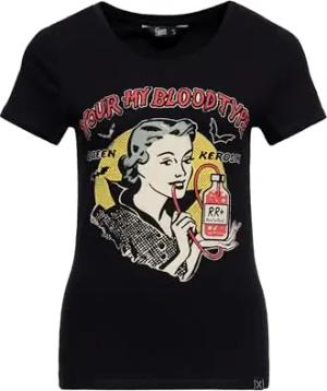 Damen T-Shirt Rockabella Vampir 50S Slim Fit Front-Print Retro Vintage Elastan Rock'n'roll Halloween Comic Art You're My Blood Type