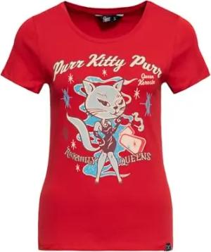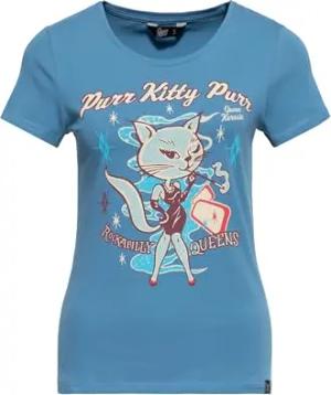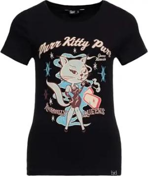 Damen T-Shirt Rockabilly Kitty 50S Slim Fit Front-Print Retro Vintage Rock'n'roll Cat Comic Art Purr Kitty Purr