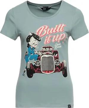 Damen T-Shirt Rockabilly Rockabella 50S Slim Fit Front-Print Retro Vintage Hot Rod Rock'n'roll Work Wear 1950 Custom Garage Built It Up!