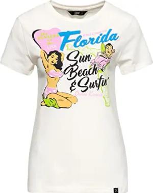 Damen Vintage Shirt T-Shirt Slim Fit Frontprint Kurzarm Florida Florida