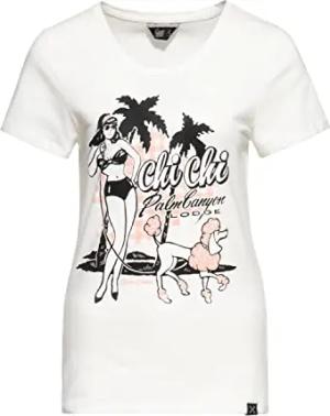 Damen Vintage Shirt T-Shirt Slim Fit Frontprint Kurzarm Retro Poodle Pin-Up Beach Chi Chi Beach Poodle