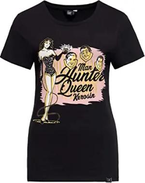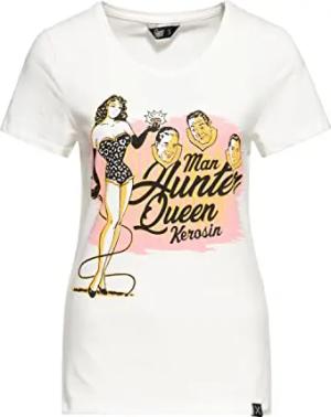 Damen Vintage Shirt T-Shirt Slim Fit Frontprint Kurzarmshirt Retro Pin-Up Diamond 50S Man Hunter