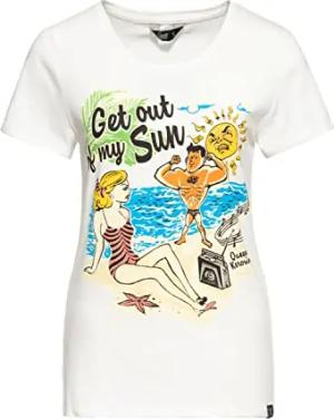Damen Vintage Shirt T-Shirt Slim Fit Frontprint Retro Kurzarm Shirt Pin-Up Pretty 50S Rockabella Get Out of My Sun