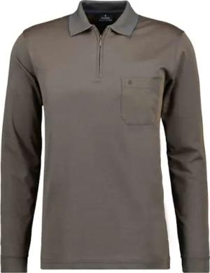 Herren Softknit-Poloshirt Langarm mit Zip Taupe dunkel-867, S