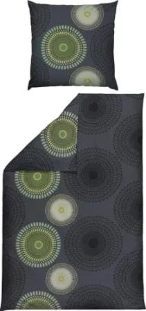 Bettwäsche Single-Jersey Mandalas anthrazit-grün Größe 40x80 cm / 155x220 cm - temperaturausgleichend, bügelfrei, mit Reißverschluss
