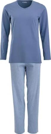 Damen-Schlafanzug 100% Baumwolle Jeansblau Größe 44 - mit Durchzugsband und Eingriffstaschen, weich und anschmiegsam