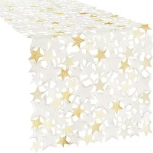 Tischläufer Sterne mit Durchbruchstickerei Creme Größe 40x85 cm - mit Metallgarn, pflegeleicht und beständig