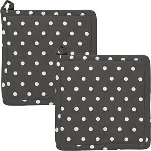 Topflappen, Untersetzer Punkte 2er-Pack, 100% Baumwolle grau Größe 20x20 cm - hitzebeständige Wattierung, außen robustes, glattes Gewebe (weitere Farben)