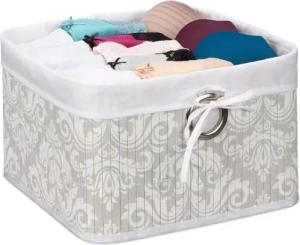Aufbewahrungskorb Bambus, mit Stoffeinsatz, Bad, HxBxT: 20x31x31 cm, faltbarer Regalkorb, viereckig, grau-weiß