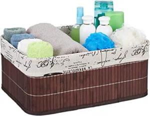 Aufbewahrungskorb, Stoffbezug mit Retro-Print, Bambus, rechteckig, Bad Regalkorb HBT 16,5x38x28,5 cm, braun