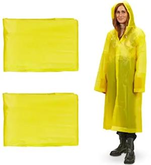 Regenmantel 2er Set, mit Kapuze, Regenponcho wiederverwendbar, Damen & Herren, wasserdicht, lang, leicht, gelb