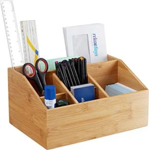 2 x Stiftköcher Bambus, Utensilienbox Holz, für Stifte, Schere, Stiftehalter, Landhausstil, HBT 11,5 x 9 x 9 cm, Natur