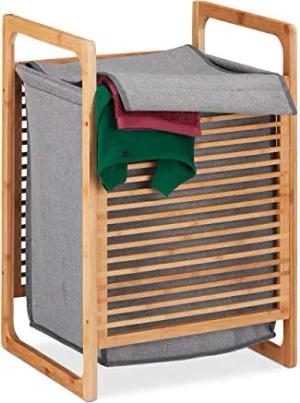 Wäschekorb Bambus, eckig Wäschesammler mit Deckel, für Schmutzwäsche im Bad, HBT: 60 x 40 x 35 cm, natur/grau
