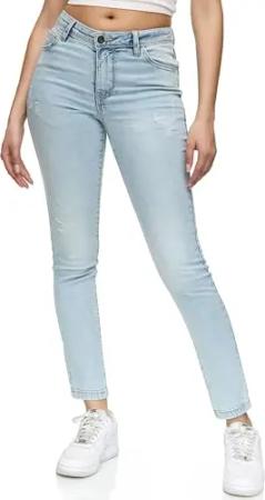 Damen Destroyed Mid Waist Skinny-Fit Stretch Denim Jeans RJ-1003 Bleached Blue 34