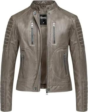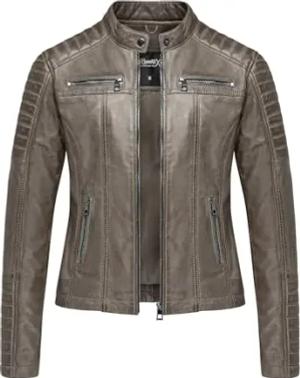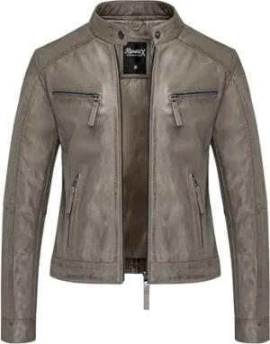 Damen Echtleder Jacke Biker Zipper Lederjacke RJ-8011 Grau 3XL