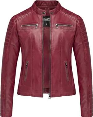Damen Echtleder Jacke Biker Zipper Lederjacke RJ-8011 Bordeaux XXL
