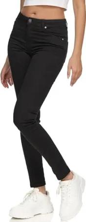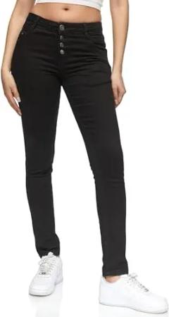 Damen Mid Waist Skinny-Fit Stretch Denim Jeans Basic RJ-1001 Schwarz 32
