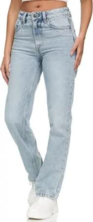 Damen Mid Waist Loose-fit Denim Jeans Basic RJ-1002 Hellblau 32