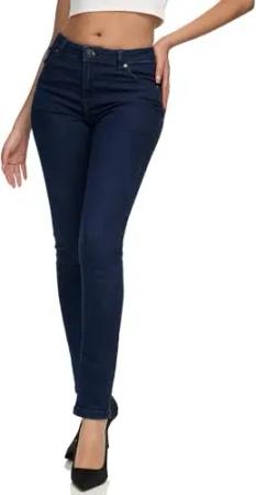 Damen Mid Waist Skinny-Fit Stretch Denim Jeans Basic RJ-1001 Dunkelblau 38