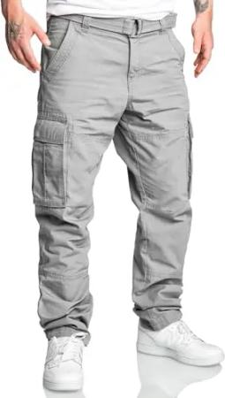 Herren Cargohose Loosefit Jogger Chino Hose Inkl. Gürtel R7028 Hellgrau W32