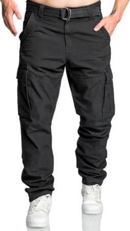 Herren Cargohose Loosefit Jogger Chino Hose Inkl. Gürtel R7028 Schwarz W30