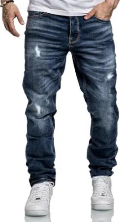 Herren Jeans Regular Straight Fit Denim Hose Destroyed R7998 Dunkelblau W29/L30