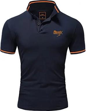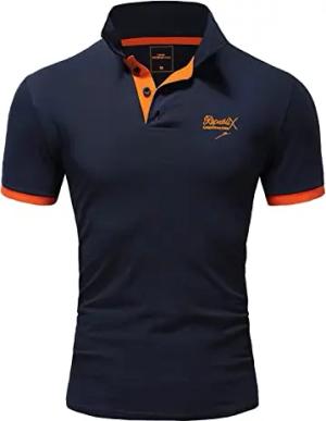 Herren Poloshirt Basic Kontrast Stickerei Kragen Kurzarm Polohemd T-Shirt R-0056 Navyblau/Orange XXL