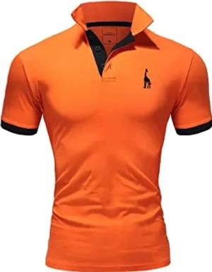 Herren Poloshirt Basic Kontrast Stickerei Kragen Kurzarm Polohemd T-Shirt R-0058 Orange/Schwarz 4XL
