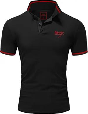 Herren Poloshirt Basic Kontrast Stickerei Kragen Kurzarm Polohemd T-Shirt R-0061 Schwarz/Rot M