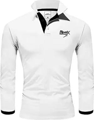 Herren Poloshirt Basic Kontrast Stickerei Kragen Langarm Polohemd T-Shirt R-0057 Weiß/Schwarz 3XL