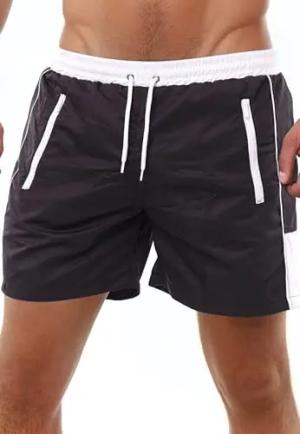 Badehose Herren Schnelltrocknend - Männer Badeshorts mit Reißverschluss Taschen Kurze Shorts für Strand & Surfer I Ideal als Schwimmhose & Badehosen RS-5015 Schwarz-Weiß S