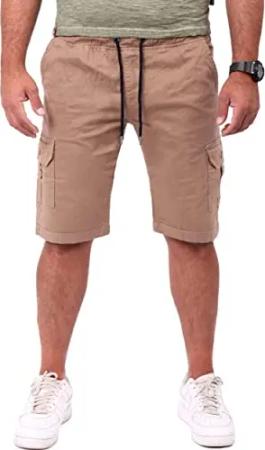 Cargoshorts Kurz Männer l Kurze Hose Herren - Shorts Herren mit Taschen l Bermuda Chino Cargo-Hose RS-2025 Beige W34
