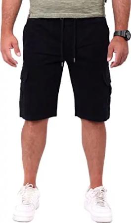 Cargoshorts Kurz Männer l Kurze Hose Herren - Shorts Herren mit Taschen l Bermuda Chino Cargo-Hose RS-2025 Schwarz W29