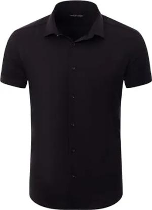 Hemd Herren Kurzarm Slim Fit | Freizeithemden für Sommer | Stretch Hemden mit optimalen Komfort | Elegantes Business Männer Hemd RS-7025 Schwarz S