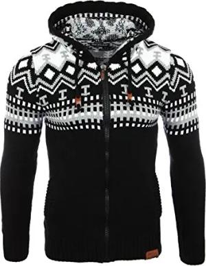 Herren Grobstrick Norweger Pullover Winter Strickjacke Kapuzenpullover RS-3104 (L, Schwarz-Weiß)