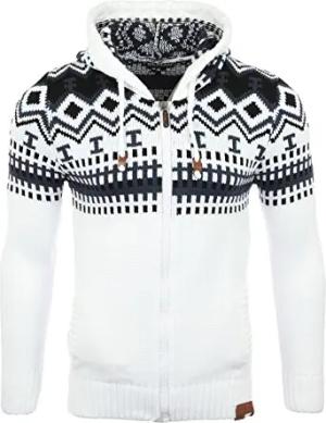 Herren Grobstrick Norweger Winter Strickjacke mit Kapuze RS-3104 Weiß M