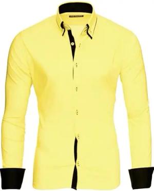 Herren Hemd bügelfrei Slim Fit Freizeit Hemden Business Herrenhemd Kontrast zweifarbig Langarm RS-7050 Gelb Schwarz Gr S