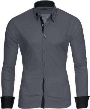 Herren Hemd Grau Slim Fit Langarm Hemd Bügelfrei Hochzeit Anthrazit-Schwarz Gr. S