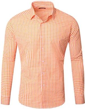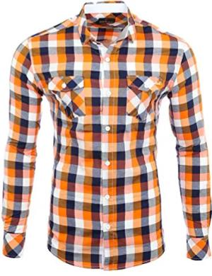 Herren Hemd Männer Party Freizeit Sommer Figurbetont karriert Langarm Neu Bügelfrei Flanell RS-7060 Orange Weiß XL