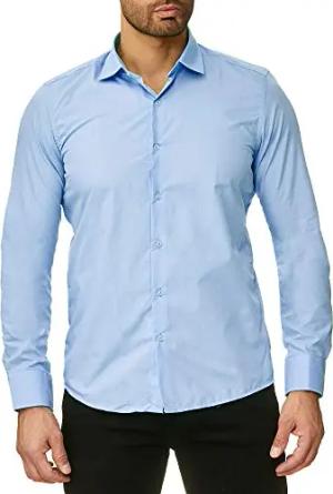 Herren Hemd Slim Fit Bügelfrei Businesshemd Oberhemd Hochzeit Männer Hemden Anzug Uni Langarm Neu RS-7002 Hellblau L