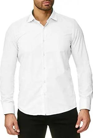 Herren Hemd Slim Fit Bügelfrei Businesshemd Oberhemd Hochzeit Männer Hemden Anzug Uni Langarm Neu RS-7002 Weiß L
